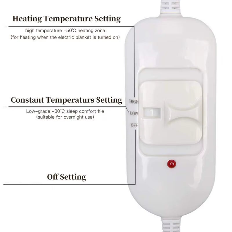 Temperature: high-level: -50℃ heating zone (for heating when the electric blanket is just turned on)