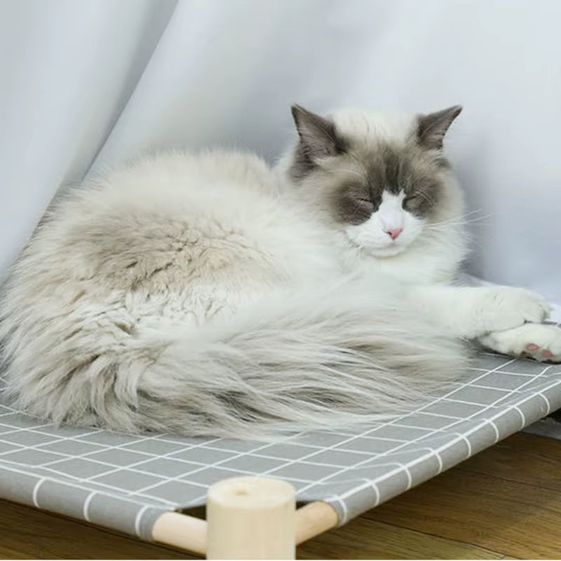 Cat and Dog Hammock Bed Wooden Cat Hammock Elevated Cooling Bed Detachable Portable Indoor Outdoor Pet Bed Suitable
