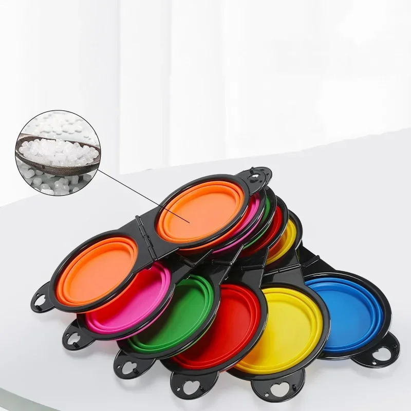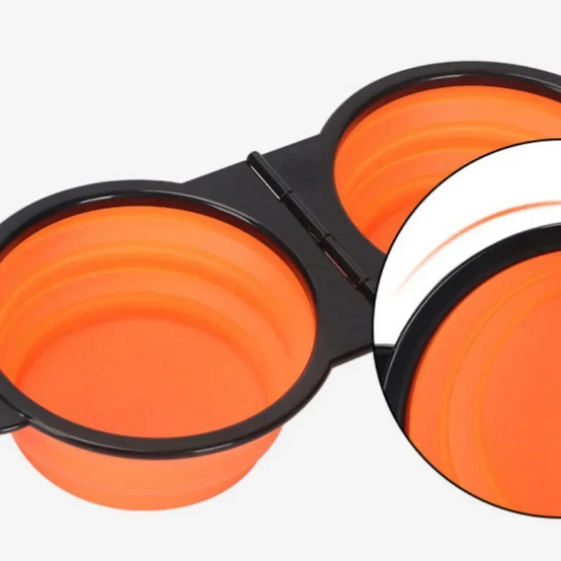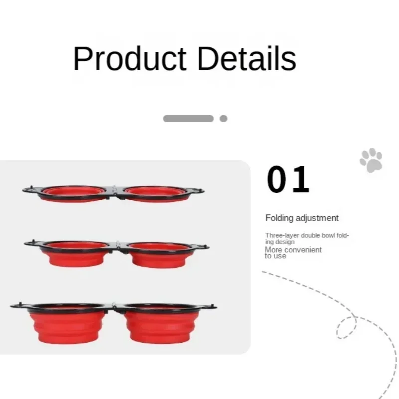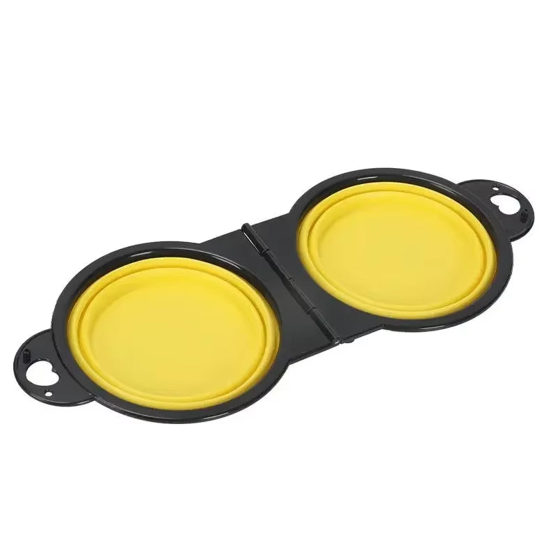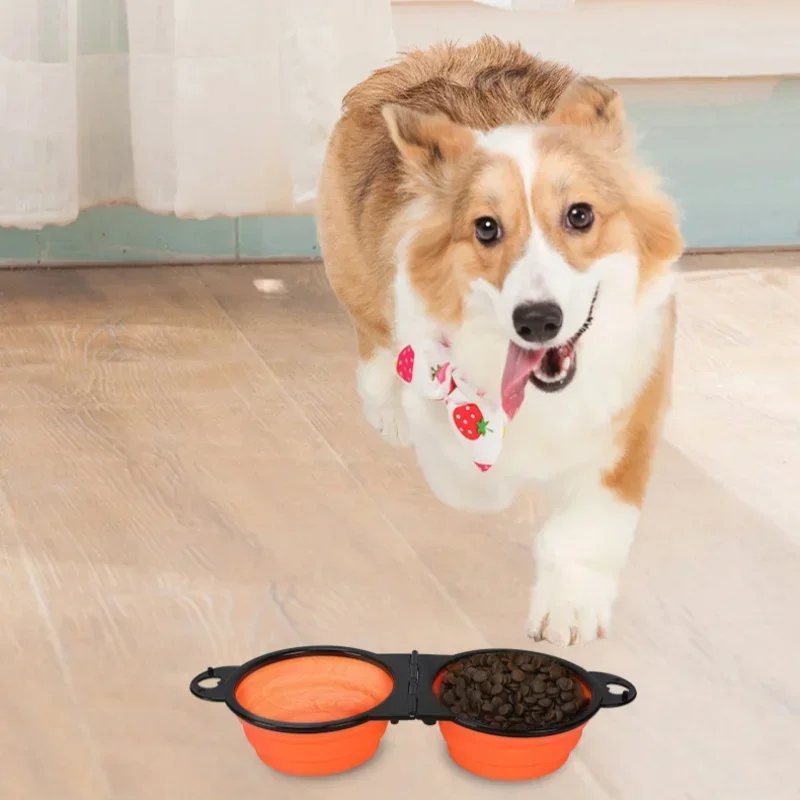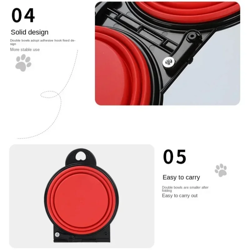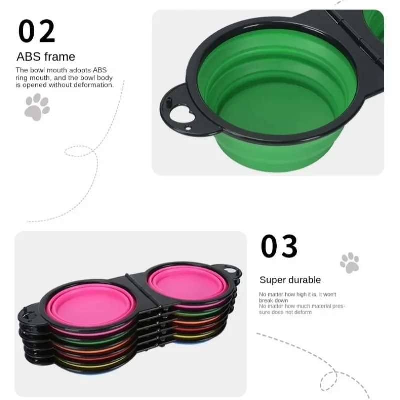 2-In-1 Foldable Dual Bowl Feeding Bowl Portable Outdoor Travel Dog and Cat Drinking Bowl Collapsible Pet Double Bowls