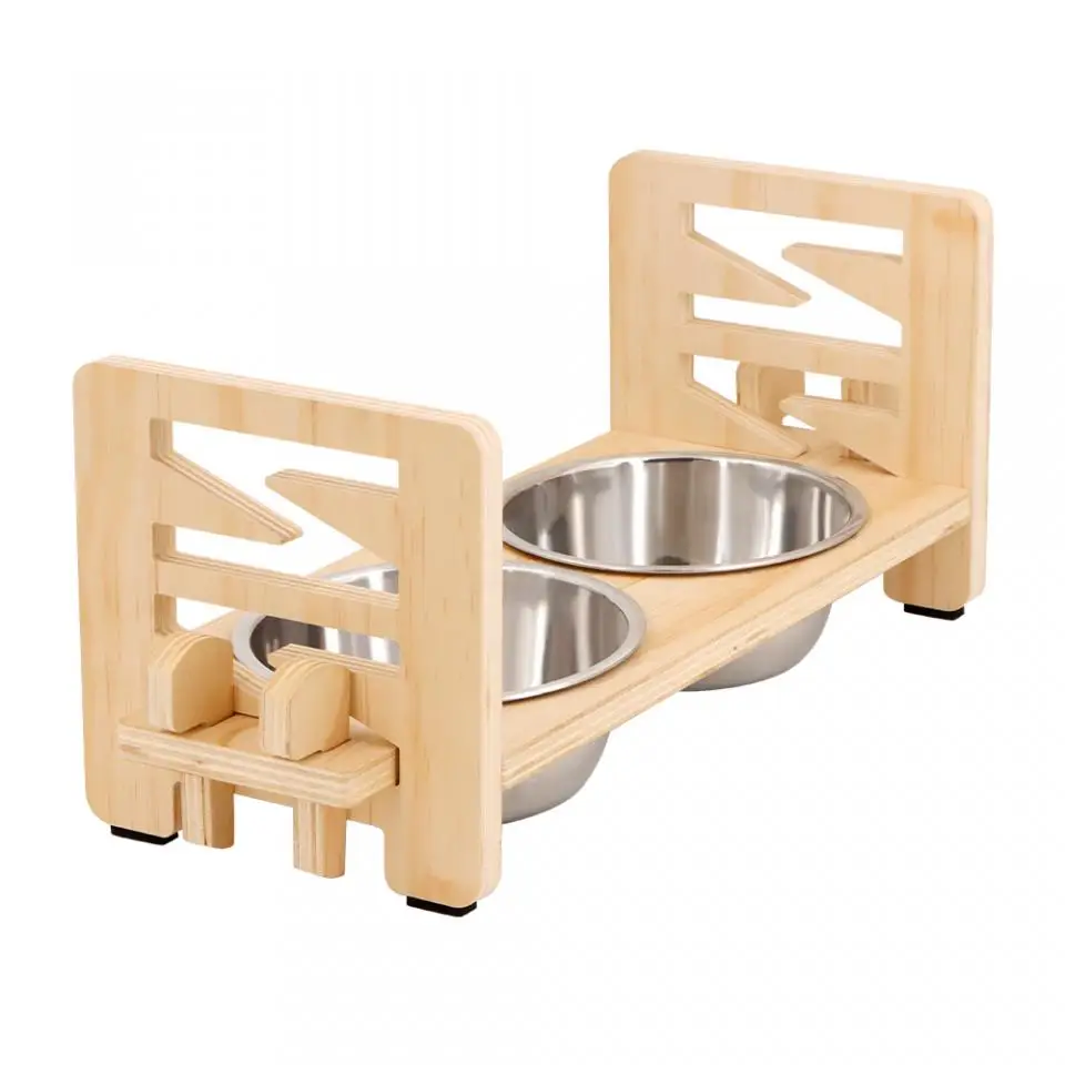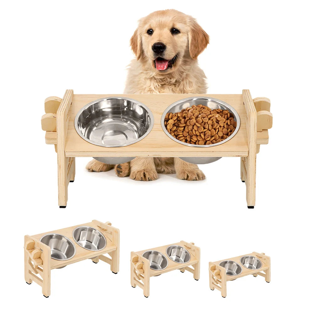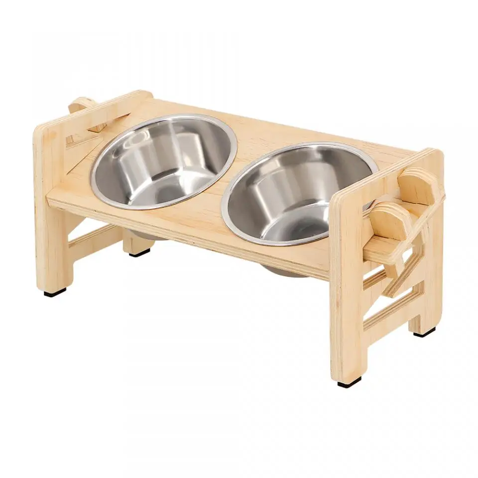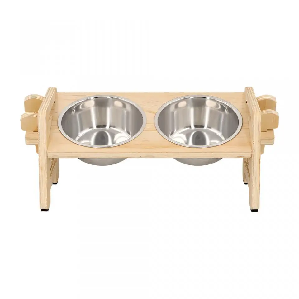 Durable & Easy To Clean Natural and odor-free wooden workmanship provides the elevated pet bowl with well-finished corners and a smooth surface. Comes with a total of two stainless steel bowls and a Wooden bowl rack. The size of the bowls is 5 inches inner diameter, perfect for dry kibble, wet food, treats, or water.