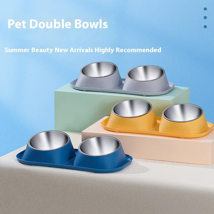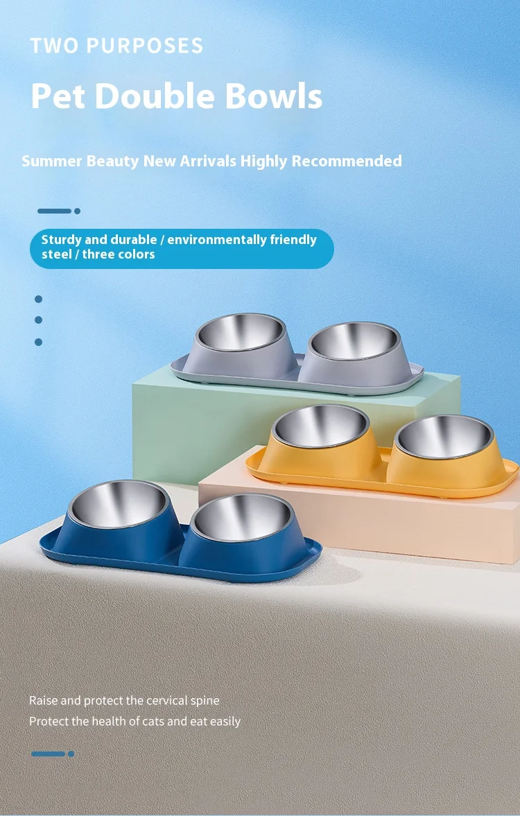 Heavy Duty Stainless Steel Pet Bowl Anti-Spill Slow Feeder for Cats Dogs Double Single Non-Tip Bowl Rustproof Pet Dining Set