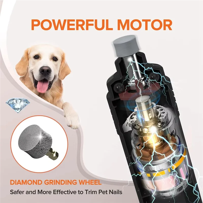 Professional Pet Nail Grooming: Whether you are a professional pet groomer or you prefer to trim your pet's nails at home, the electric dog nail trimmer is what you need! Our dog grooming supplies are professional-grade tools that ensures a quick, safe and effective nail trimming without causing any discomfort for your pet!