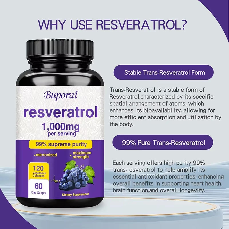 Trans-Resveratrol has a more stable structure for enhanced bioavailability, allowing it to be more effectively absorbed and utilized by the body.
