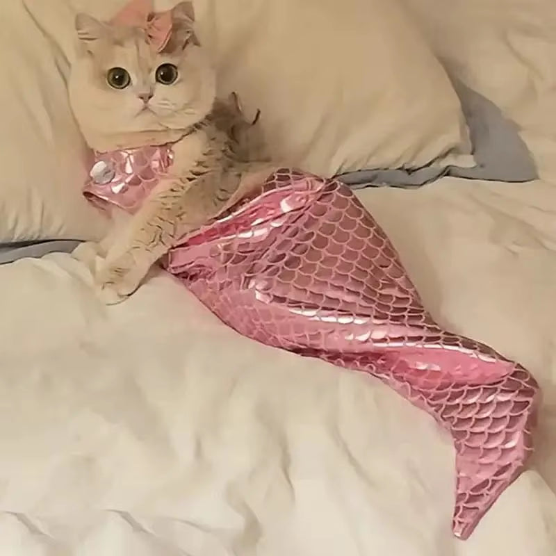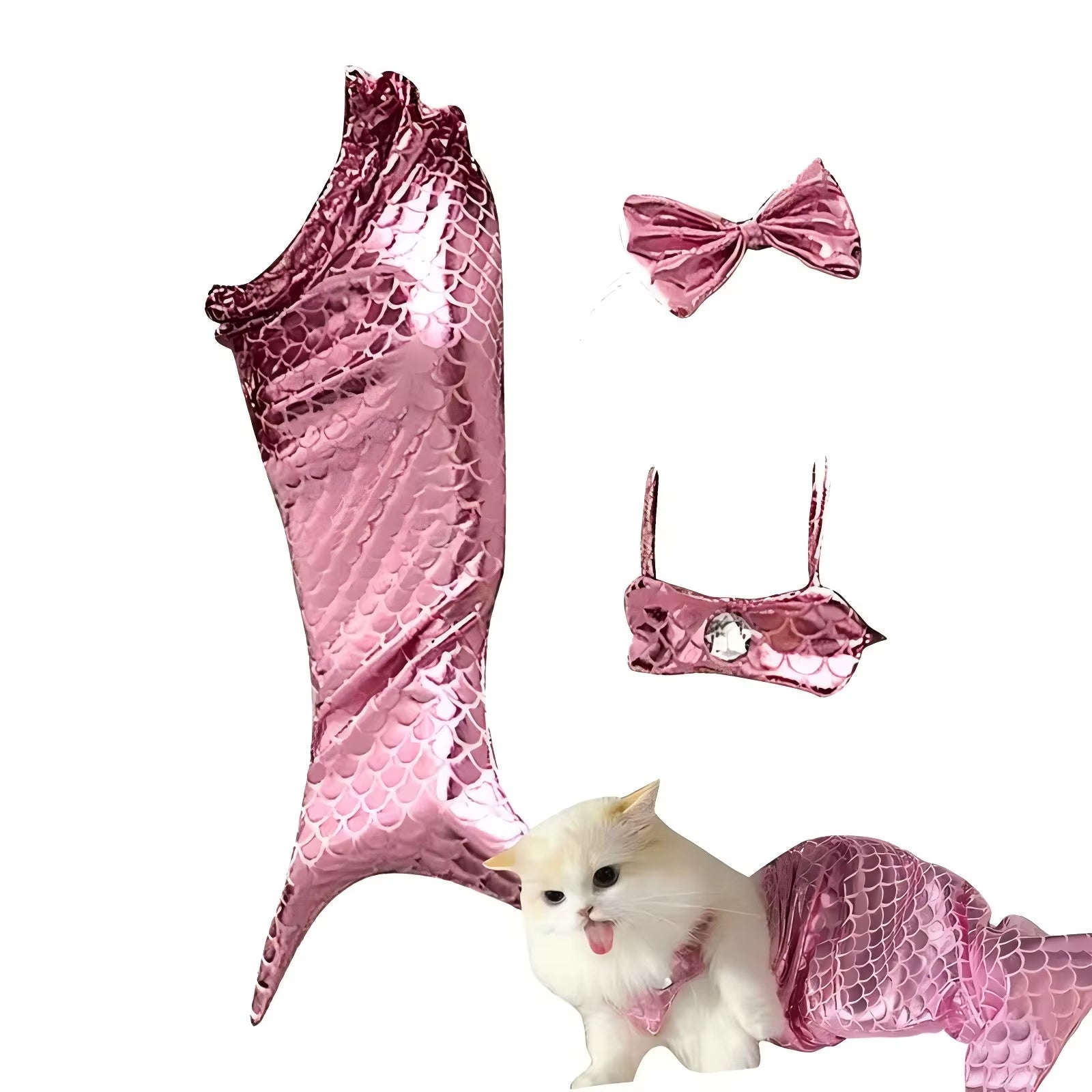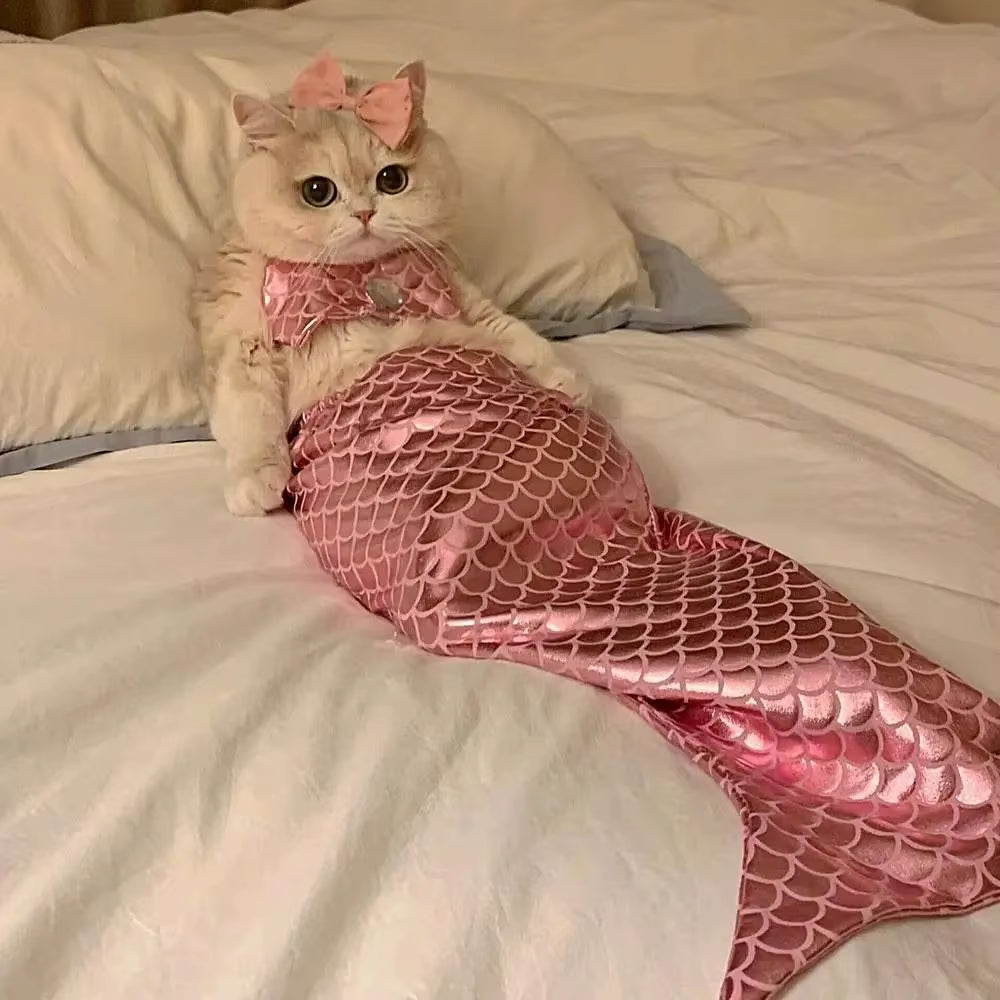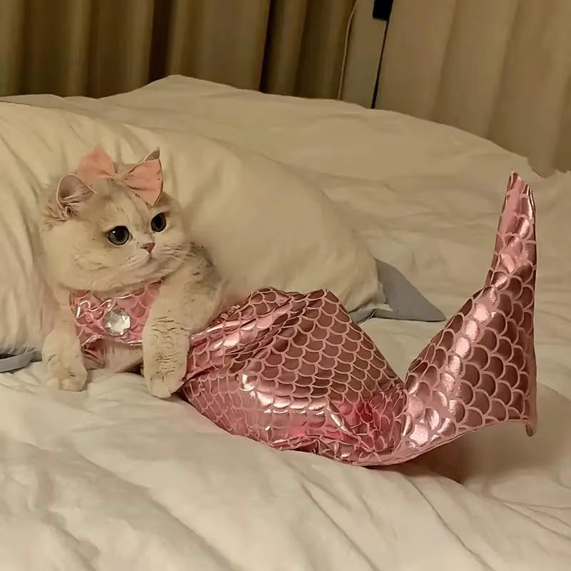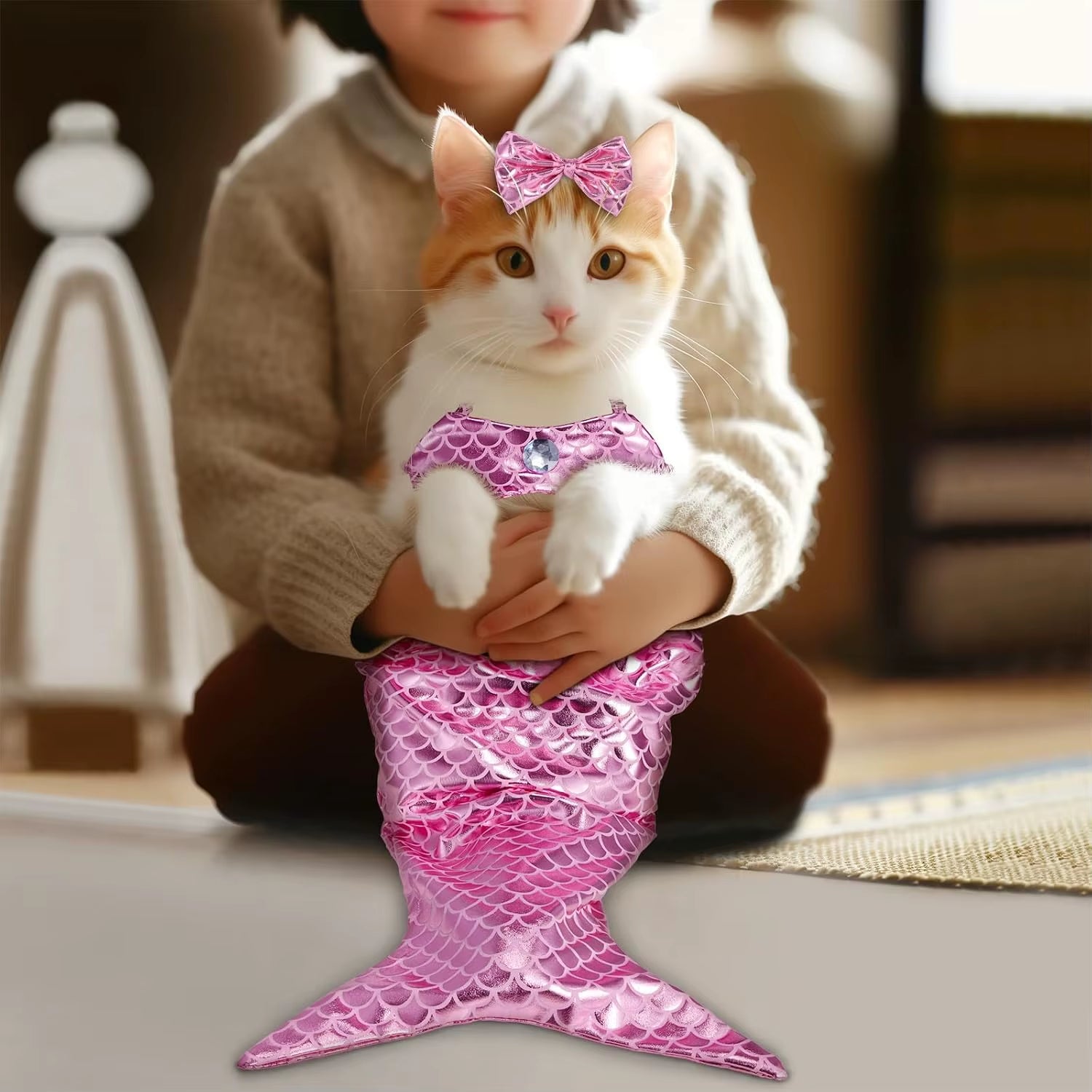 TONG Pet Cat Mermaid Pet Costume Dog Dresses Fish Tail Design Cute Bikini Dog Summer Pet Halloween Clothing Cat Mermaid Costume