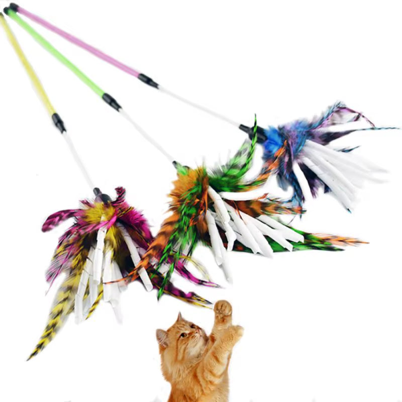 Cat Wand Toy Feather Teaser Stick Cat Toys Interactive Cat Toy Feather Wand with Paper Wadding for Indoor Cats Playing Exercise