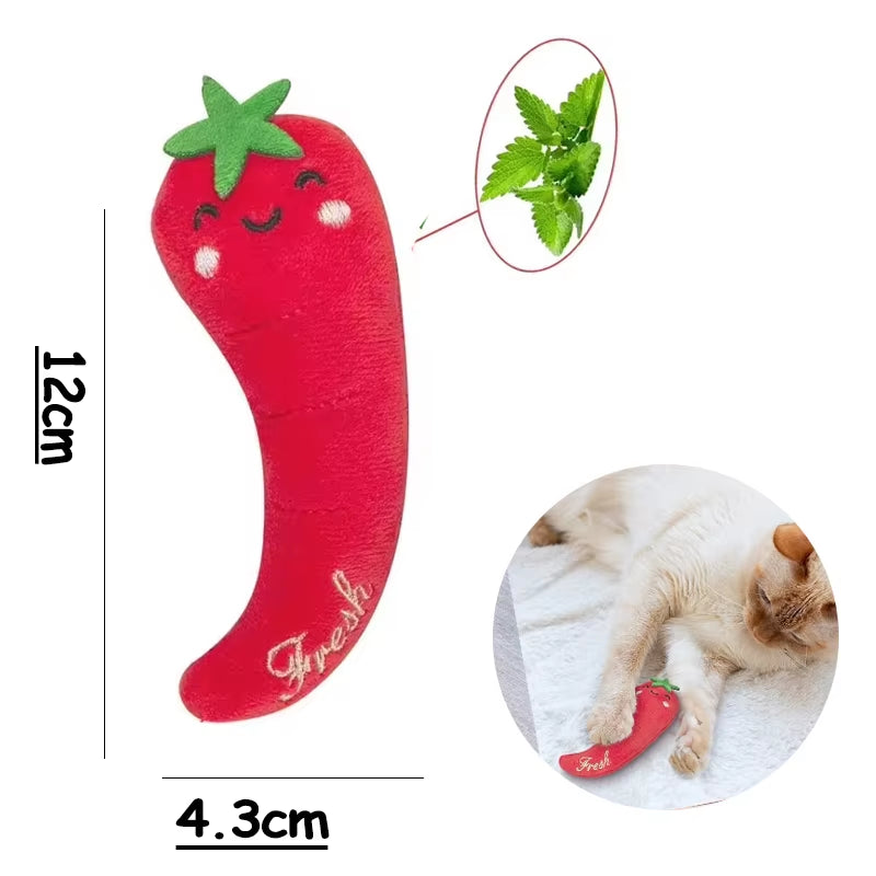 Catnip Toy for Cats. Lightweight and perfect size catnip toys for your cats to bat, chase, roll and carry. Keep them busy for a long time and help the kitten stay exercised and healthy. Cat Catnip Toys. Catnip toys made of soft plush material, filled with non-toxic safe catnip ingredients and are stitched by hand only to make sure all catnip toys are safe for cat playing. Cat Toys for Indoor Cats. Catnip toys can excite your cats and activates their hunting instincts, engage your cats in solo or interactive play and make playtime fun for your favorite feline friend. Cat Toys with Catnip. Catnip toys can help satisfy cats’ urges to bite and chew and clean your kitten's teeth as they play and chew. Also work as cat pillow. Cat Toys. Package including: 5 x cat catnip toys. (Farm theme: carrot, corn, eggplant, pepper,cucumber) .Cat toys come in different color and shape.
